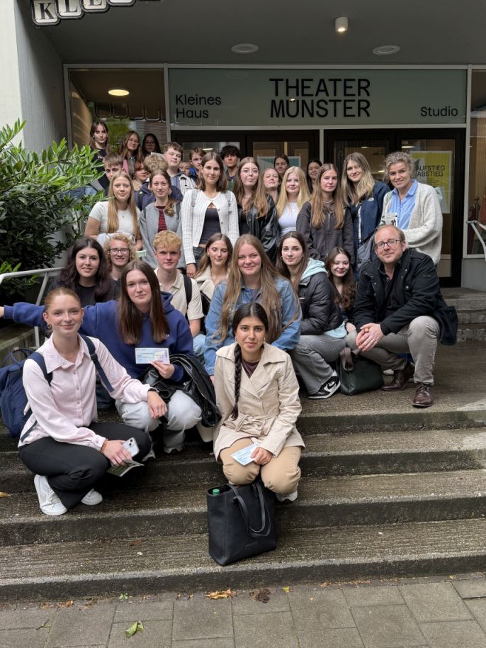 Am 5. Juni 2025 unternahmen die Deutsch-Leistungskurse der Q1/2 in Begleitung von Frau Hilbers und Herrn Krol einen abwechslungsreichen Tagesausflug nach Münster und in die Umgebung der Universitätsstadt, der etwas münsterländische Kulturgeschichte, freie Stadterkundung und ein gemeinsames Theatererlebnis verband. Der Tag war nicht nur informativ, sondern auch eine willkommene Abwechslung vom Schulalltag.