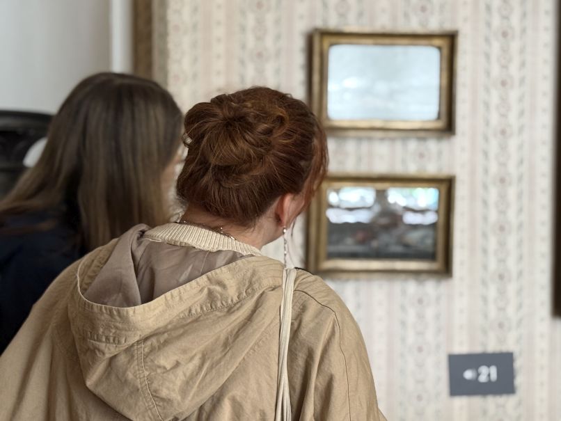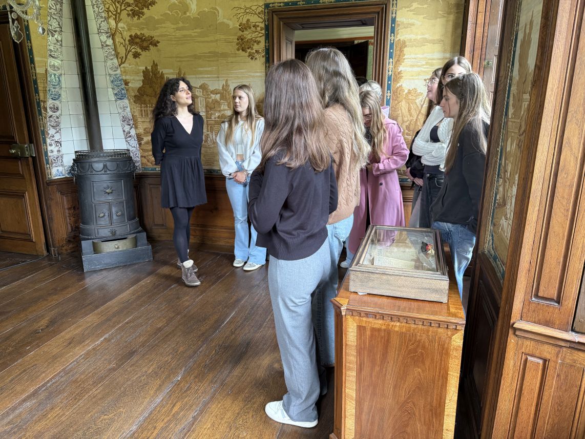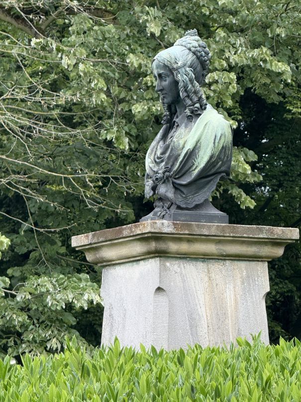 Der Vormittag begann mit dem Besuch des Hauses Rüschhaus (Nähe Nienberge), ab 1826 Wohnsitz der Dichterin Annette von Droste-Hülshoff (1797-1848). Eine informative Führung bot uns Einblicke in das Leben der Dichterin sowie in die Lebenswelt des westfälischen Adels im 19. Jahrhundert. Besonders eindrucksvoll war das kleine Arbeitszimmer – die Autorin nannte es ihr Schneckenhaus –, in dem viele Gedichte Droste-Hülshoffs sowie z. B. ihre bekannte Novelle Die Judenbuche entstanden sind. In dieses ländliche Anwesen musste Annette mit ihrer Mutter und ihrer Schwester ausweichen, nachdem ihr Bruder Werner-Constantin Freiherr Droste zu Hülshoff nach dem Tod des Vaters den Familiensitz, die Burg Hülshoff, übernommen hatte.